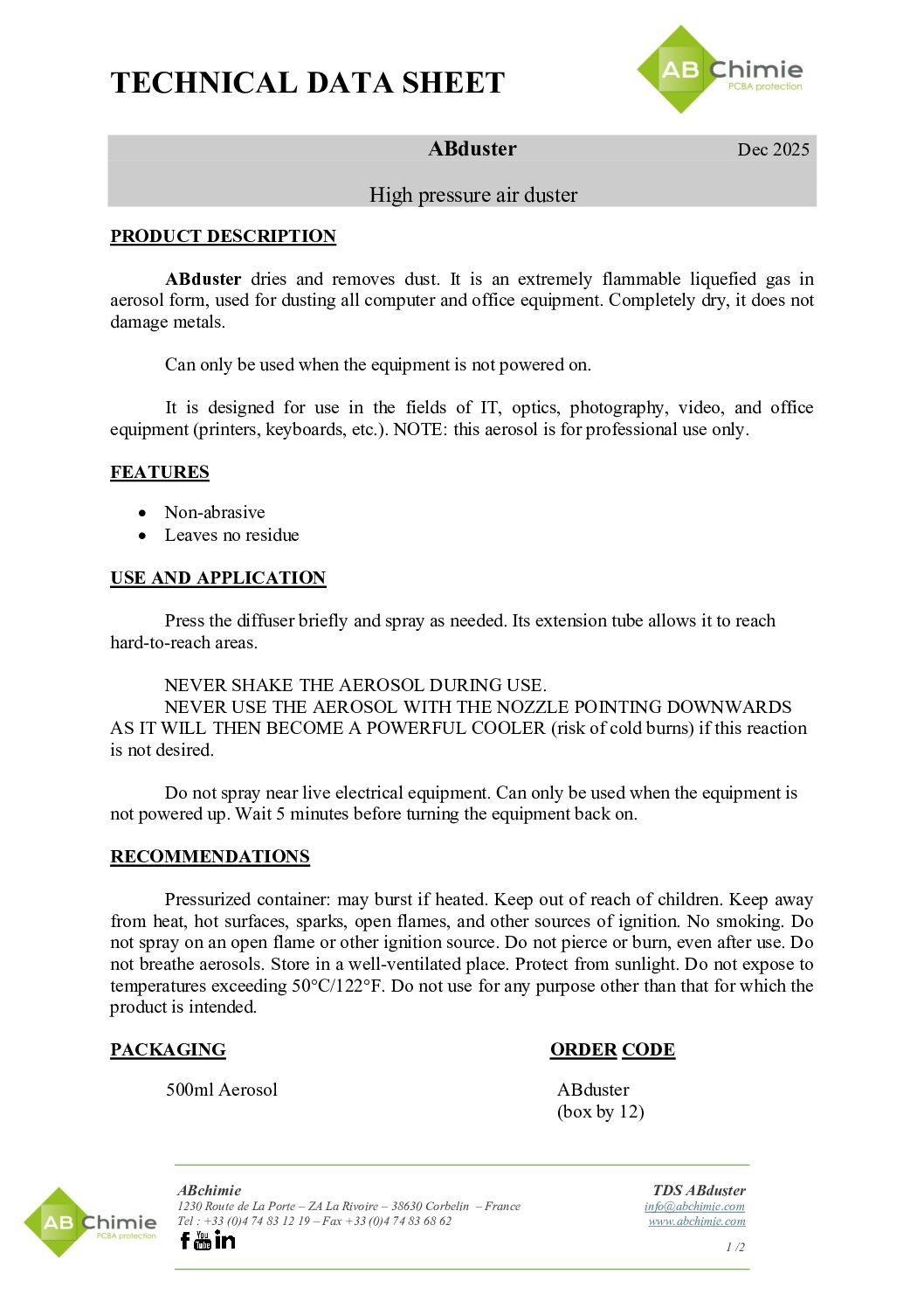 January 27, 2026 Brooklyn ABduster High pressure air duster Download Categories: Service Aids TDS Tags: English