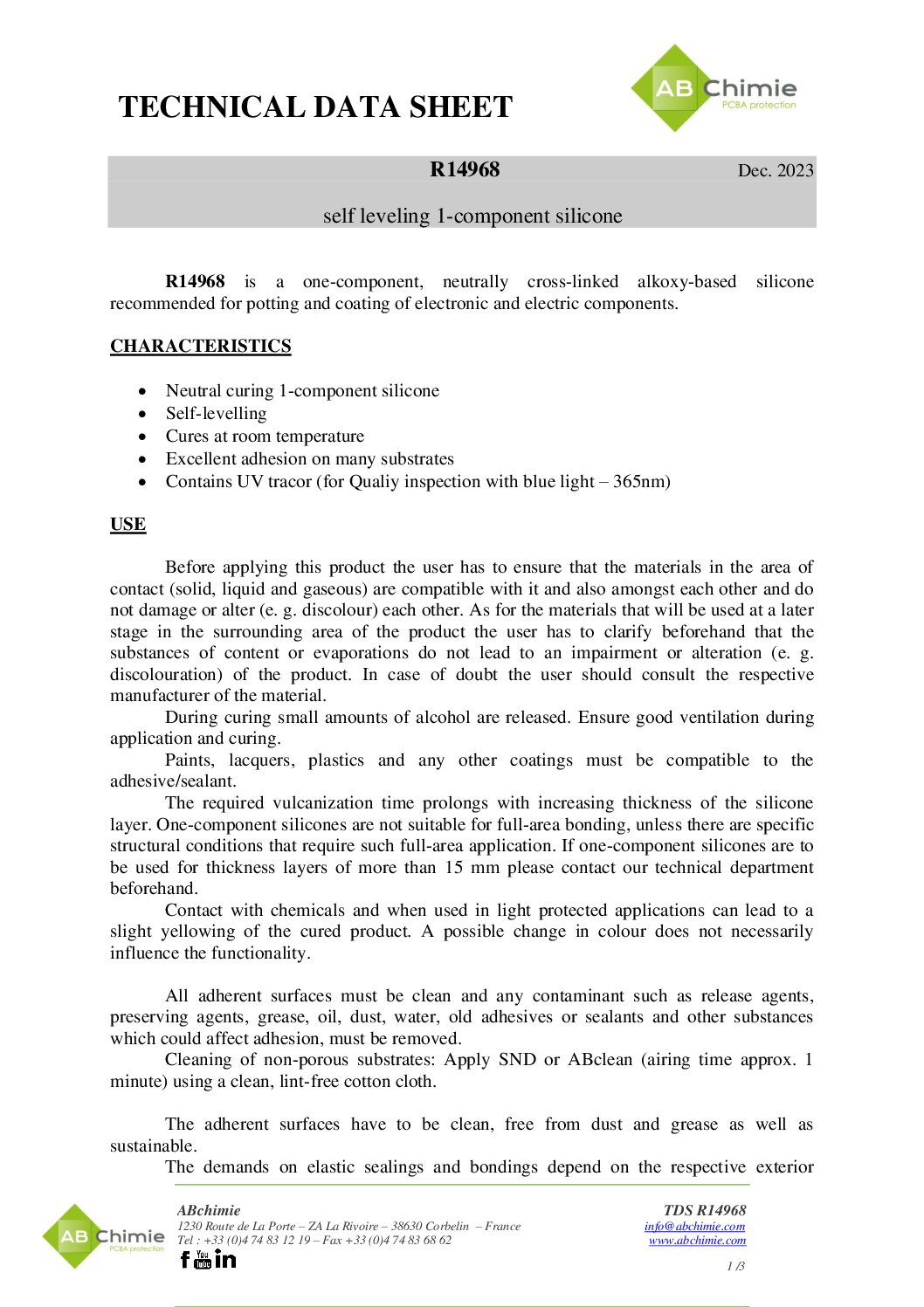 November 10, 2025 Brooklyn R14968 Silicone one component self leveling Download Categories: RTV Silicones TDS Tags: English