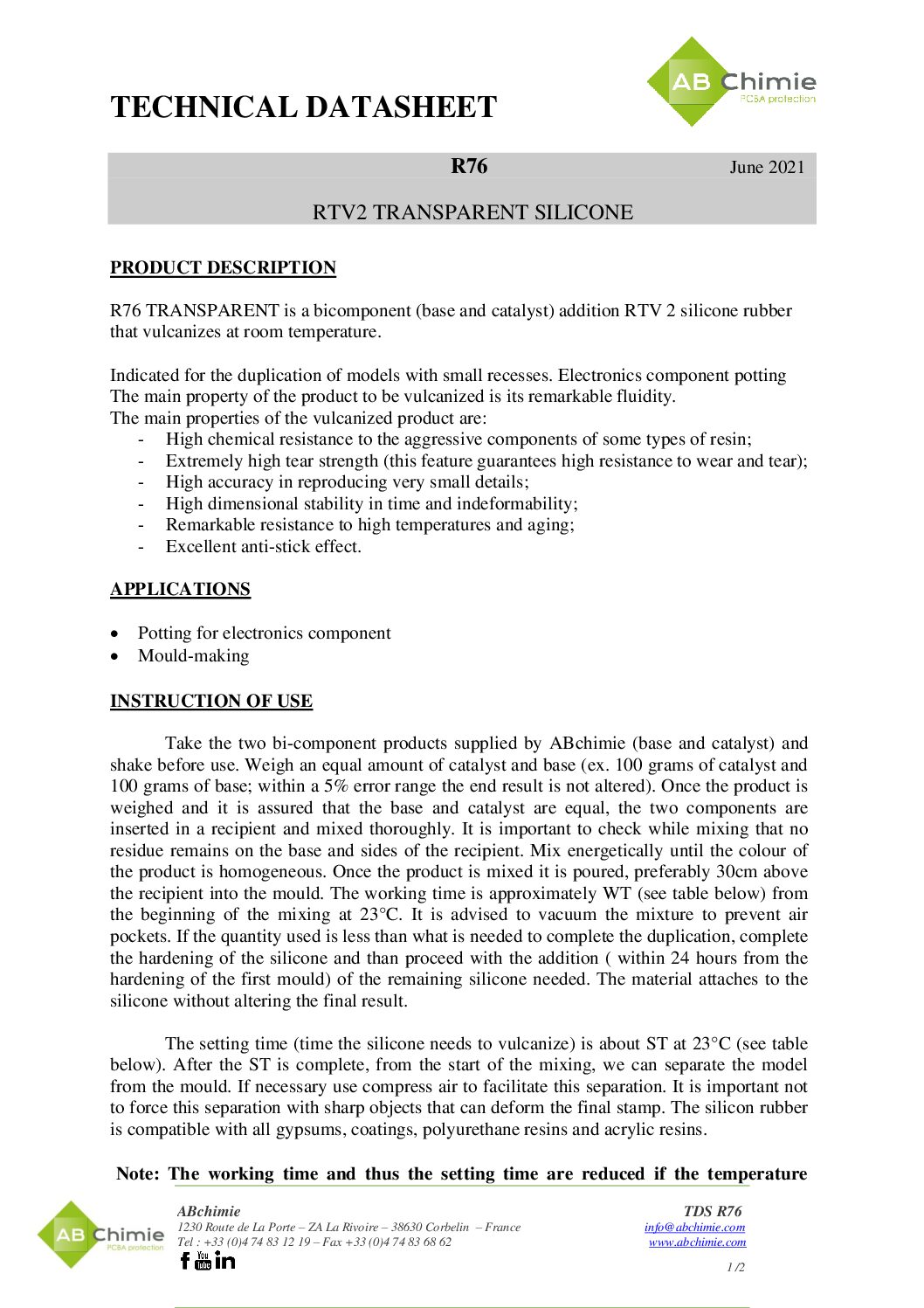 November 10, 2025 Brooklyn RTV2 – R76 RTV2 Transparent Silicone Download Categories: RTV Silicones TDS Tags: English