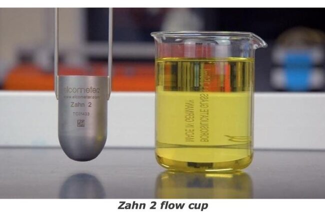 There are various types of flow cups available on the market. For example, for our popular solvent-based acrylic coating, ABchimie AVR80 BA DS 65, we recommend using a Zahn 2 cup.