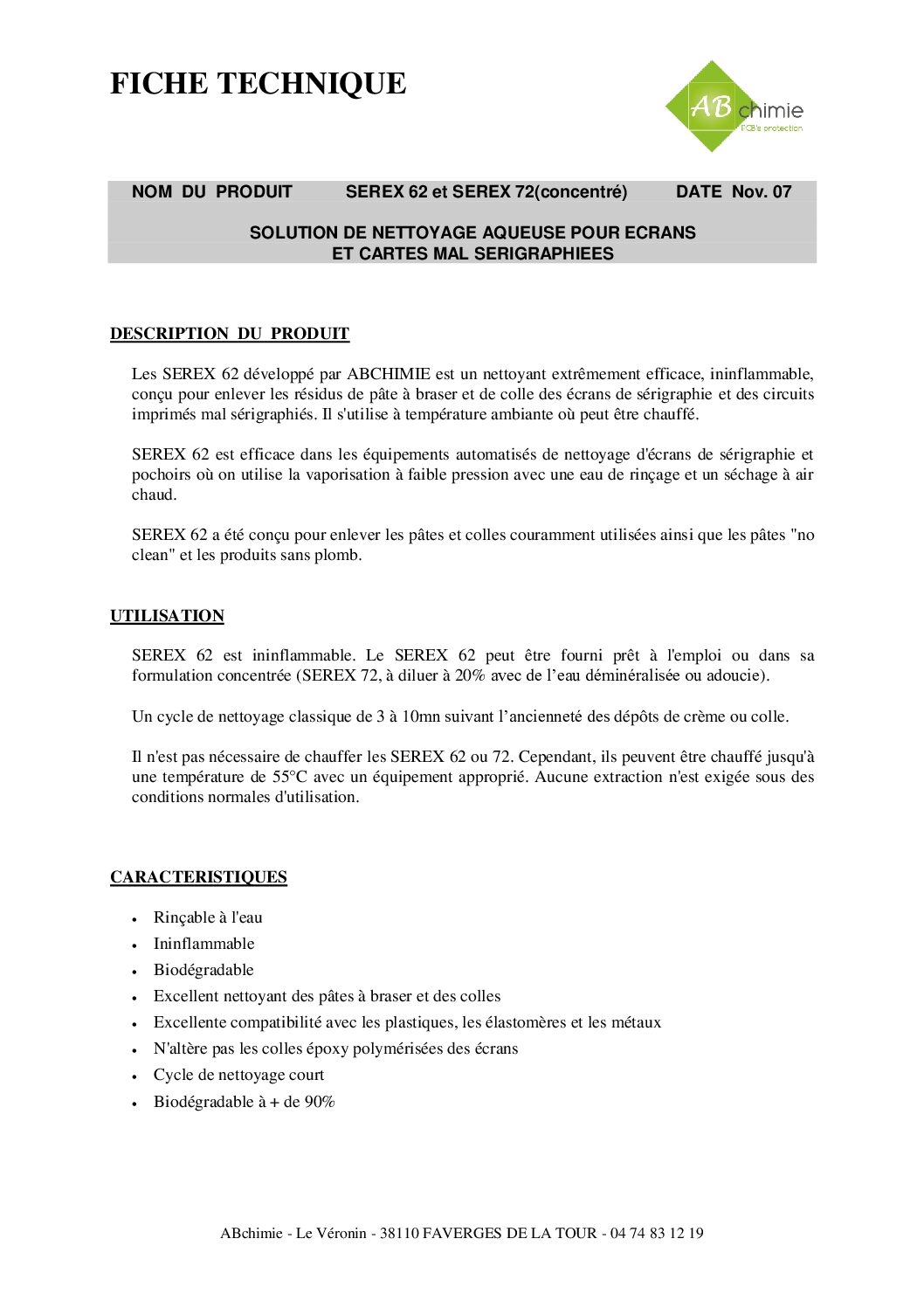 11 Nov 2025 SEREX 62 / 72 FR Solution de nettoyage aqueuse pour écrans et cartes mal sérigraphiées Brooklyn