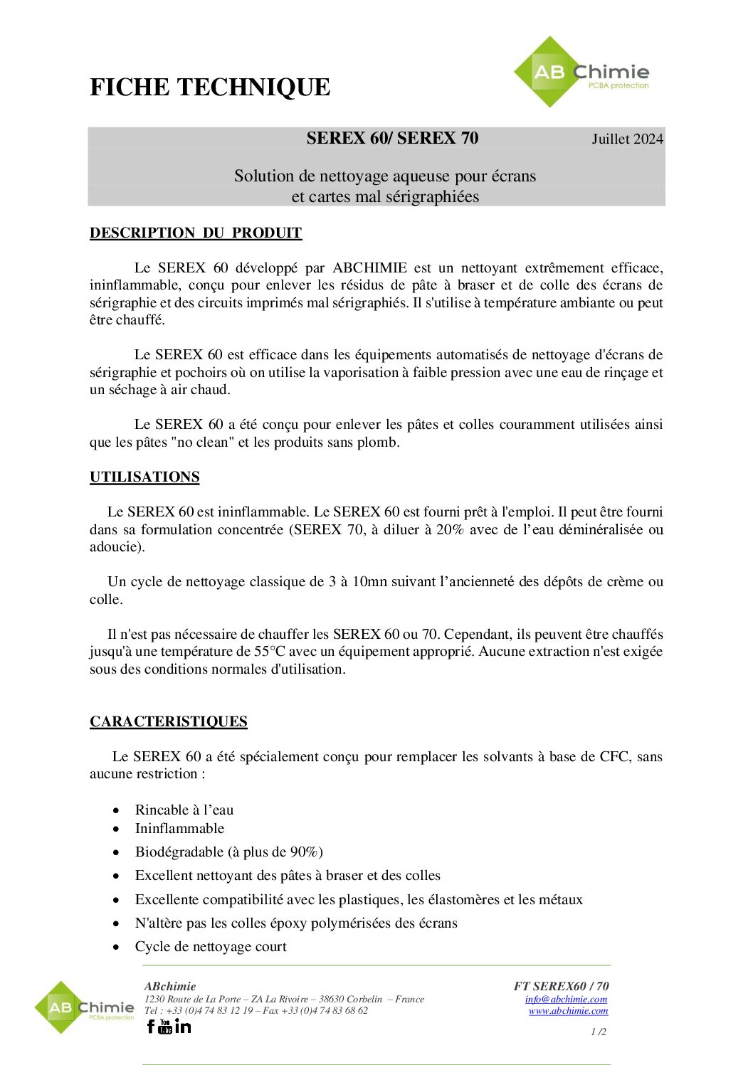 11 Nov 2025 SEREX 60 / 70 FR Solution de nettoyage aqueuse pour écrans et cartes mal sérigraphiées Brooklyn