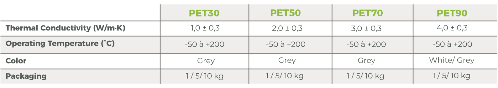 Thermal Pastes – PET 30 / 50 / 70 / 90