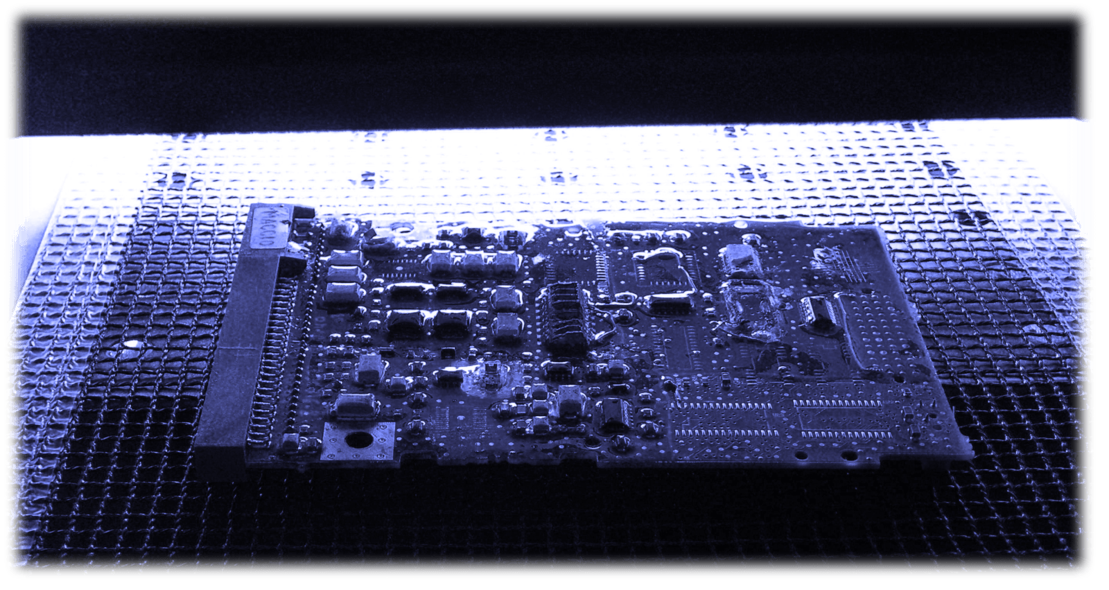 ABchimie746 E UV is a soft, permanent and transparent new conformal coating. It cures under UV light and it is designed to protect PCBAs from harsh environments. ABchimie746 E UV benefits from dual-cure technology (UV/humidity) which allows reticulation in shaded areas.