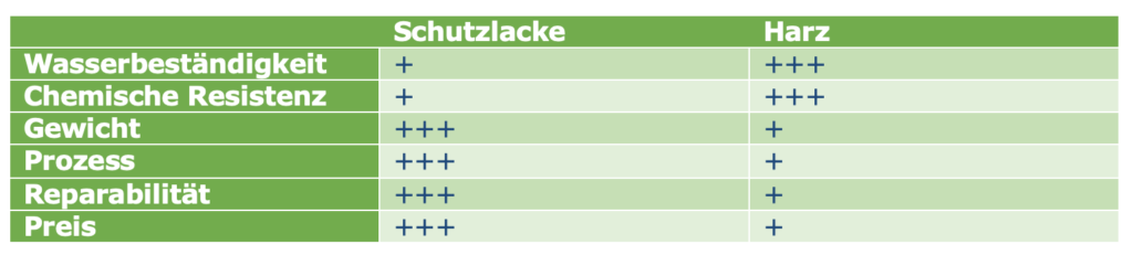 Wann ist zwischen einem Schutzlack und einem Harz (Polyurethan oder 2-Komponenten-Epoxidharz) zu wählen?