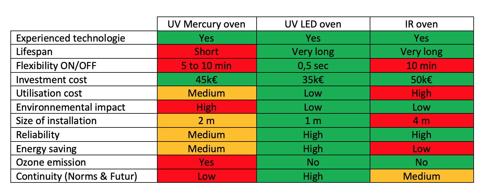 The purchase of a new oven with new technology can also be a hurdle, as the electronics industry often favours proven technologies that have decades of testing and feedback. Nevertheless, different players (chemical and equipment manufacturers) are pushing UV technology, to draw studies and feedback from experiments, because the market and industry are moving in the direction of this technology for the different curing processes in electronics.